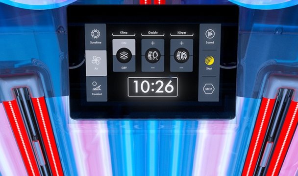 With the success of the P9S, LED technology established itself in the solarium sector. This quantum leap in terms of spectral technology is now available in the K6S and K7S. High-performance LEDs only produce the wavelengths required for a beautiful and gentle tan. At the same time, aspherical lenses in front of the LEDs guarantee an absolutely uniform illumination of the face and décolleté. Progress that can be experienced immediately.